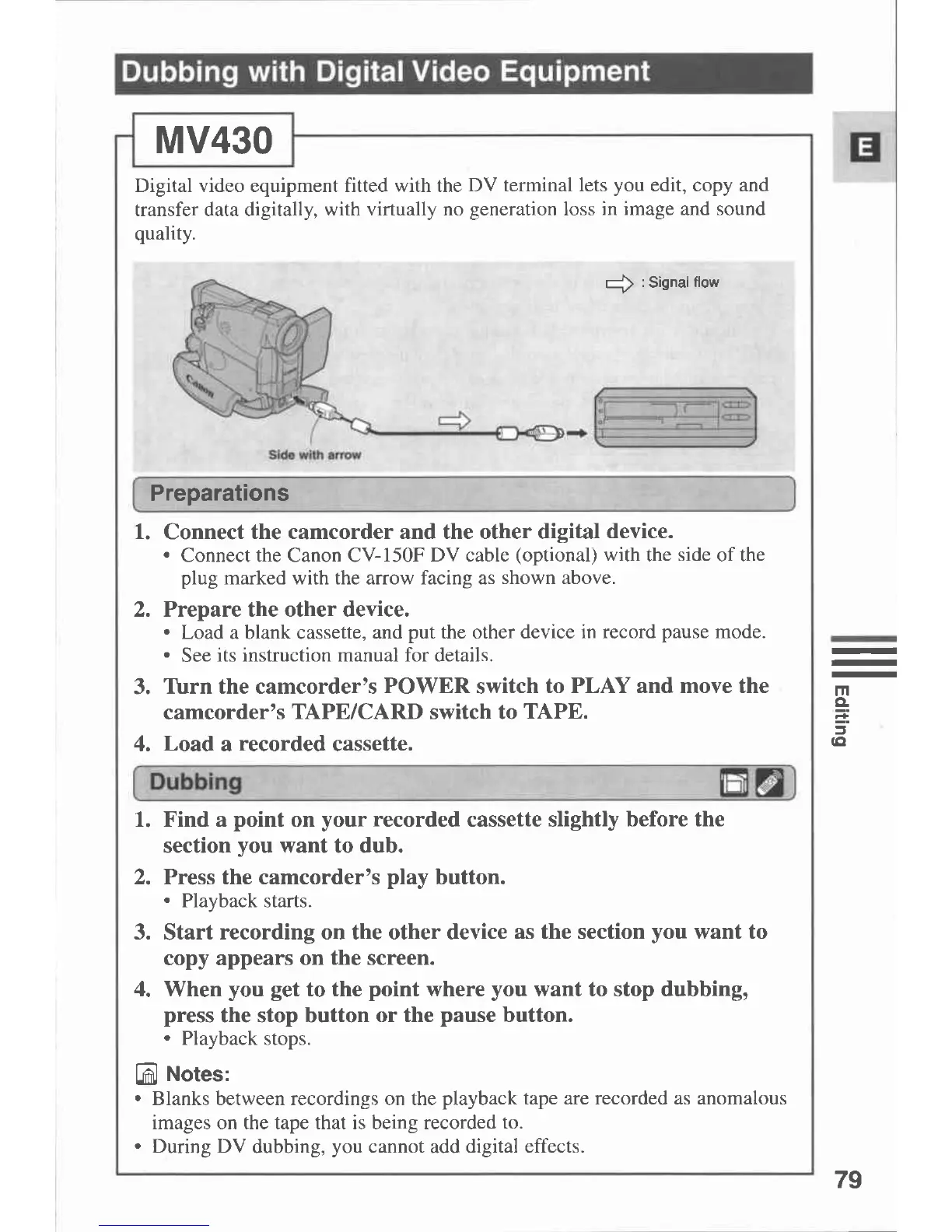 Canon MV430 - Dubbing with Digital Video Equipment; Dubbing