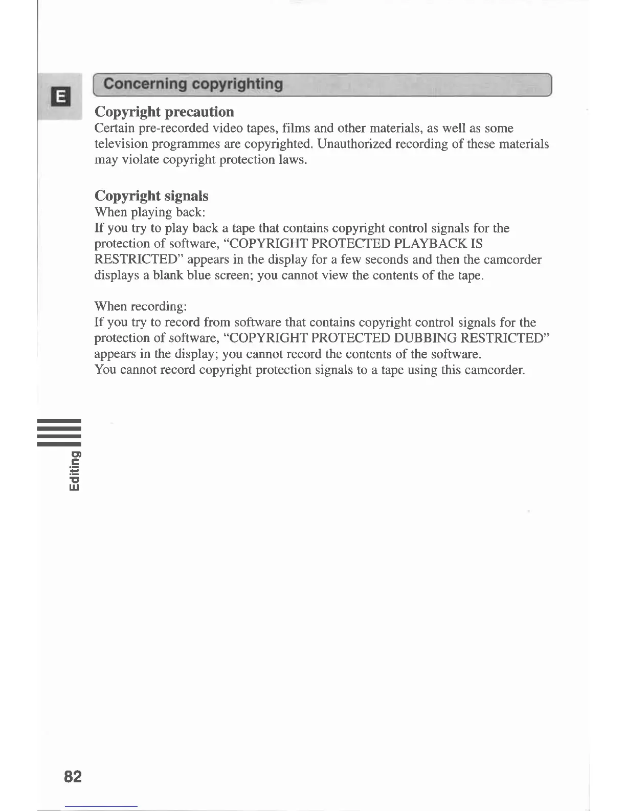 Canon MV430 - Concerning Copyrighting; Copyright Precaution; Copyright Signals