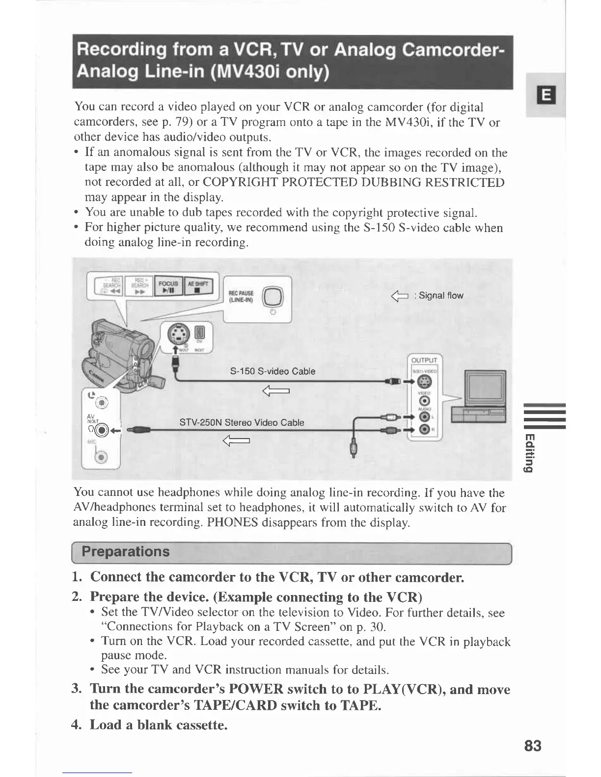 Canon MV430 - Recording from a VCR, TV or Analog Camcorder-Analog Line-In