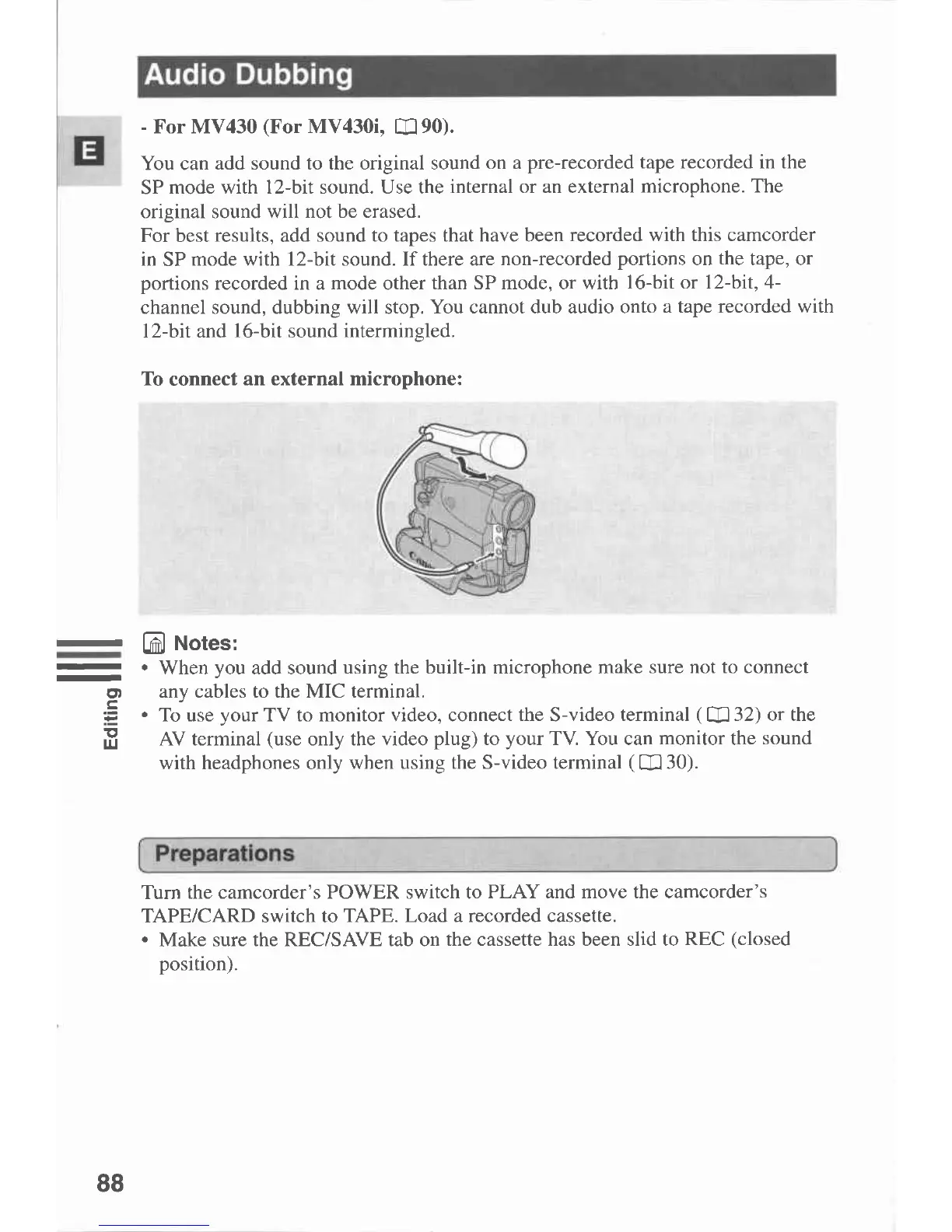 Canon MV430 - Audio Dubbing; To Connect an External Microphone