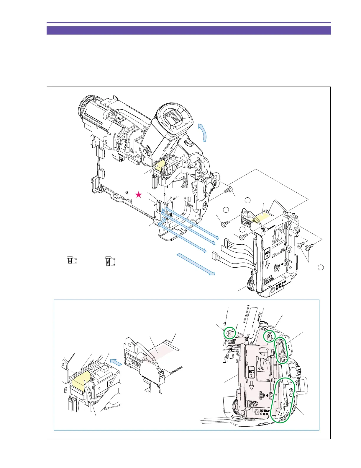 (1) When mounting the Rear Cover Unit, put the part A on the CVF-MAIN FPC, and attach the parts B, C and D. Then, pressing the