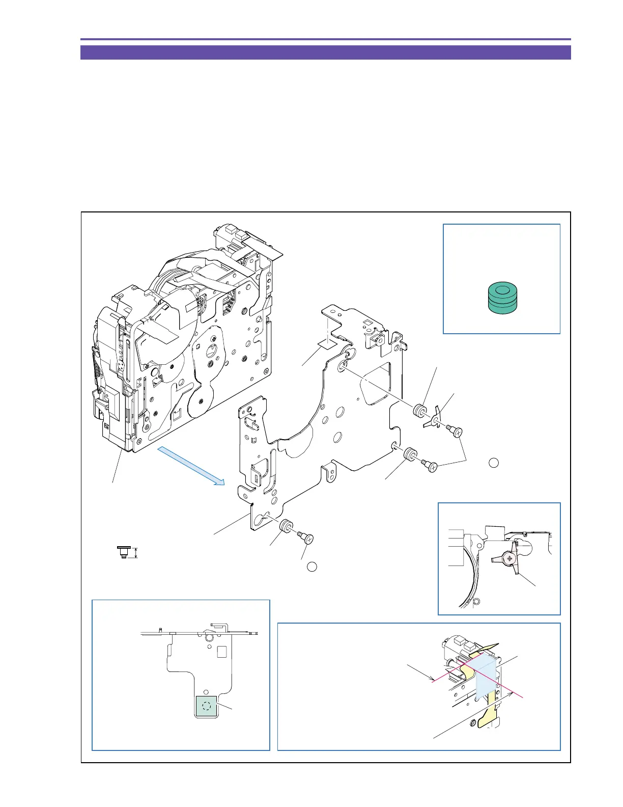 (1) Remove three screws (d × 3), and detach the Spring, Recorder Holder, Insulation Rubber and Sheet.