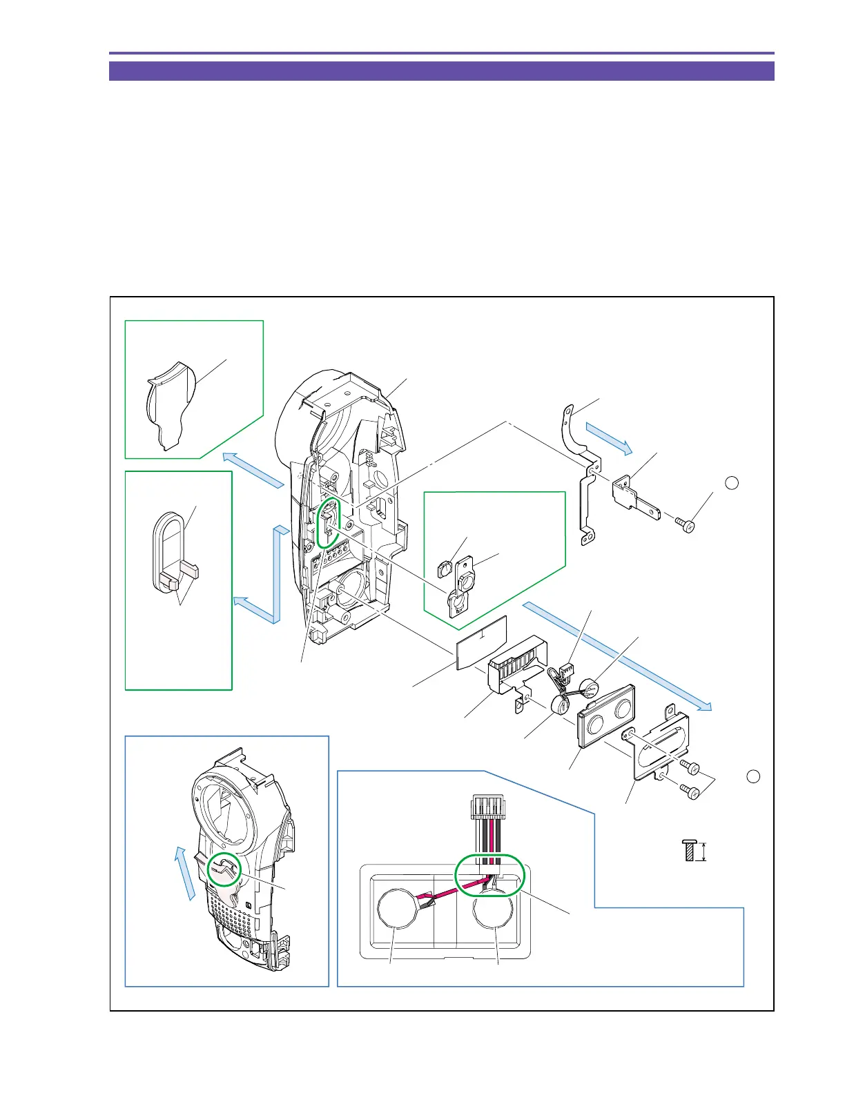 (1) Remove two screws (c × 2), and detach the MIC Plate, MIC Rubber, MIC Ass’y, MIC Shield and MIC Sheet.