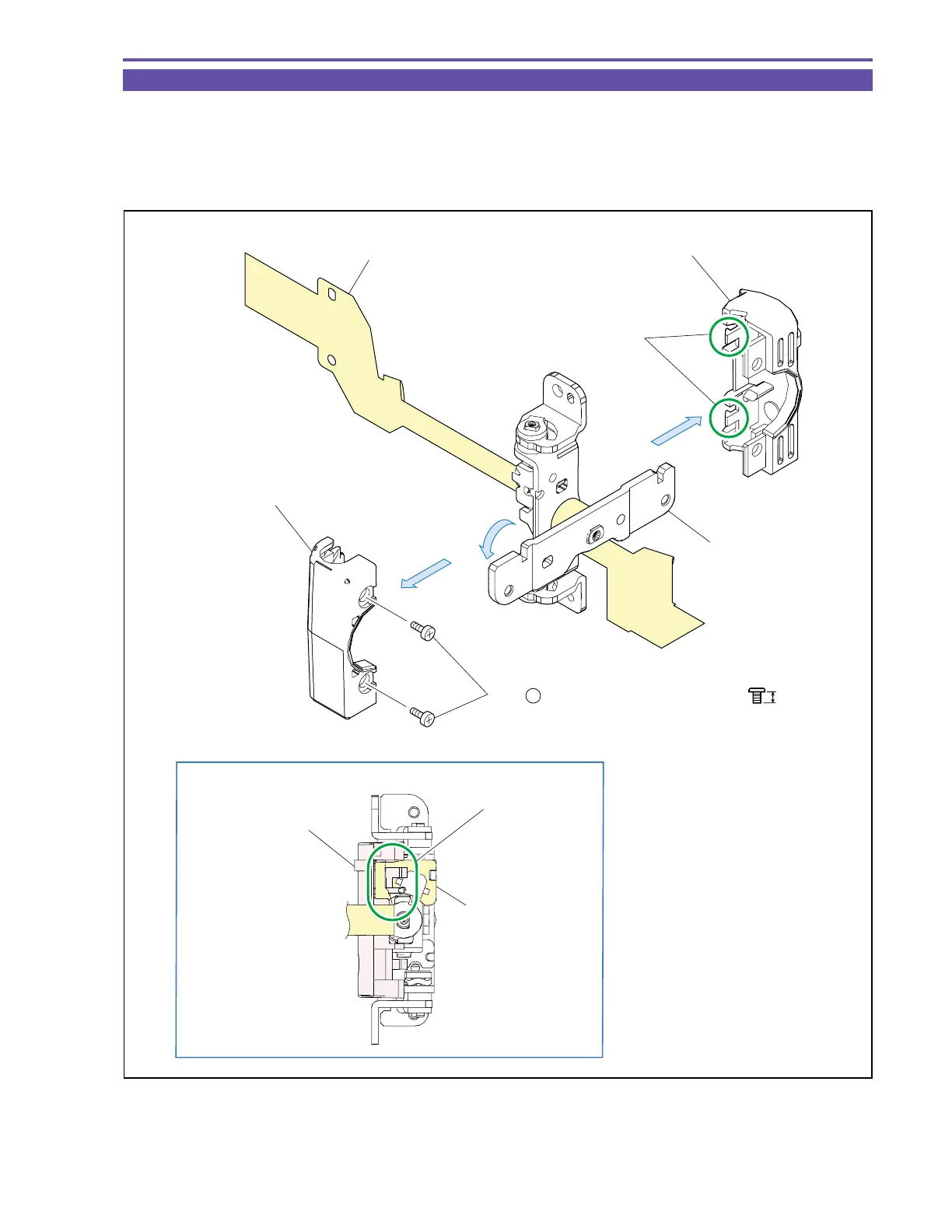 (1) When mounting the Hinge Bottom Cover, pass the LCD FPC above the rib as illustrated.