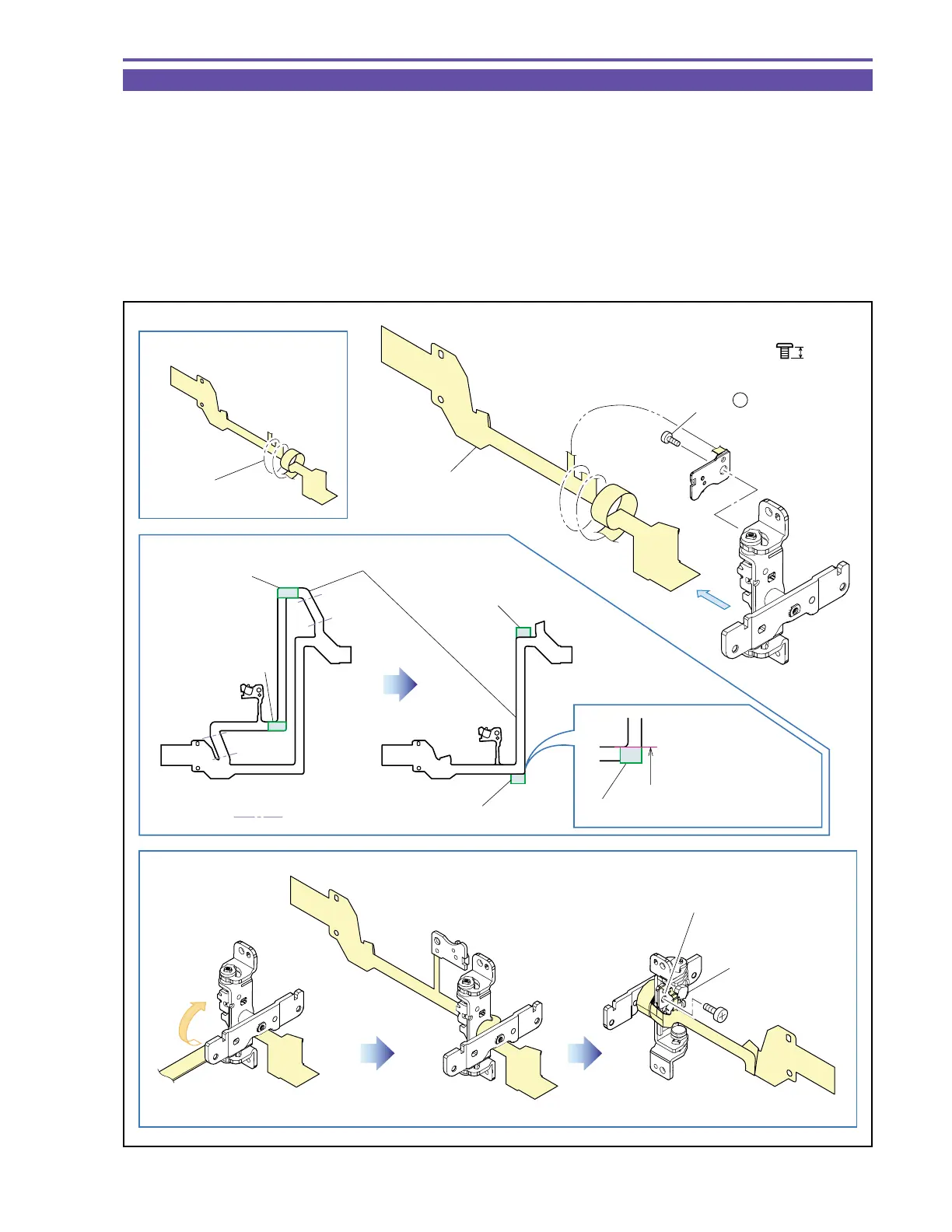 (2) Wind the LCD FPC Ass’y 2-1/2 turns at the illustrated status, and fasten the Switch section by screws. The FPC must not be wound