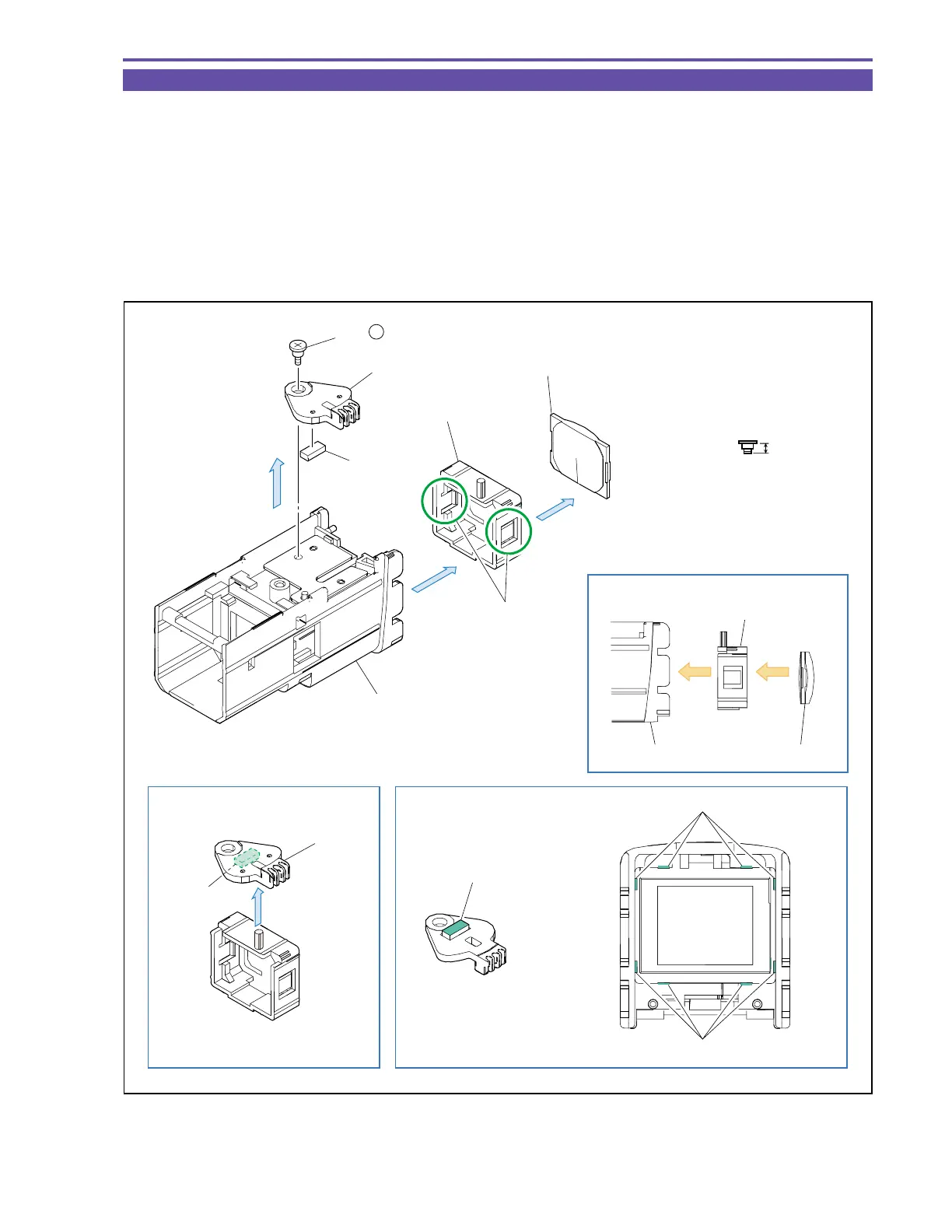 (2) When mounting the CVF Knob, engage the dowel of CVF Lens Holder as illustrated. Do not fail to position the Rubber.