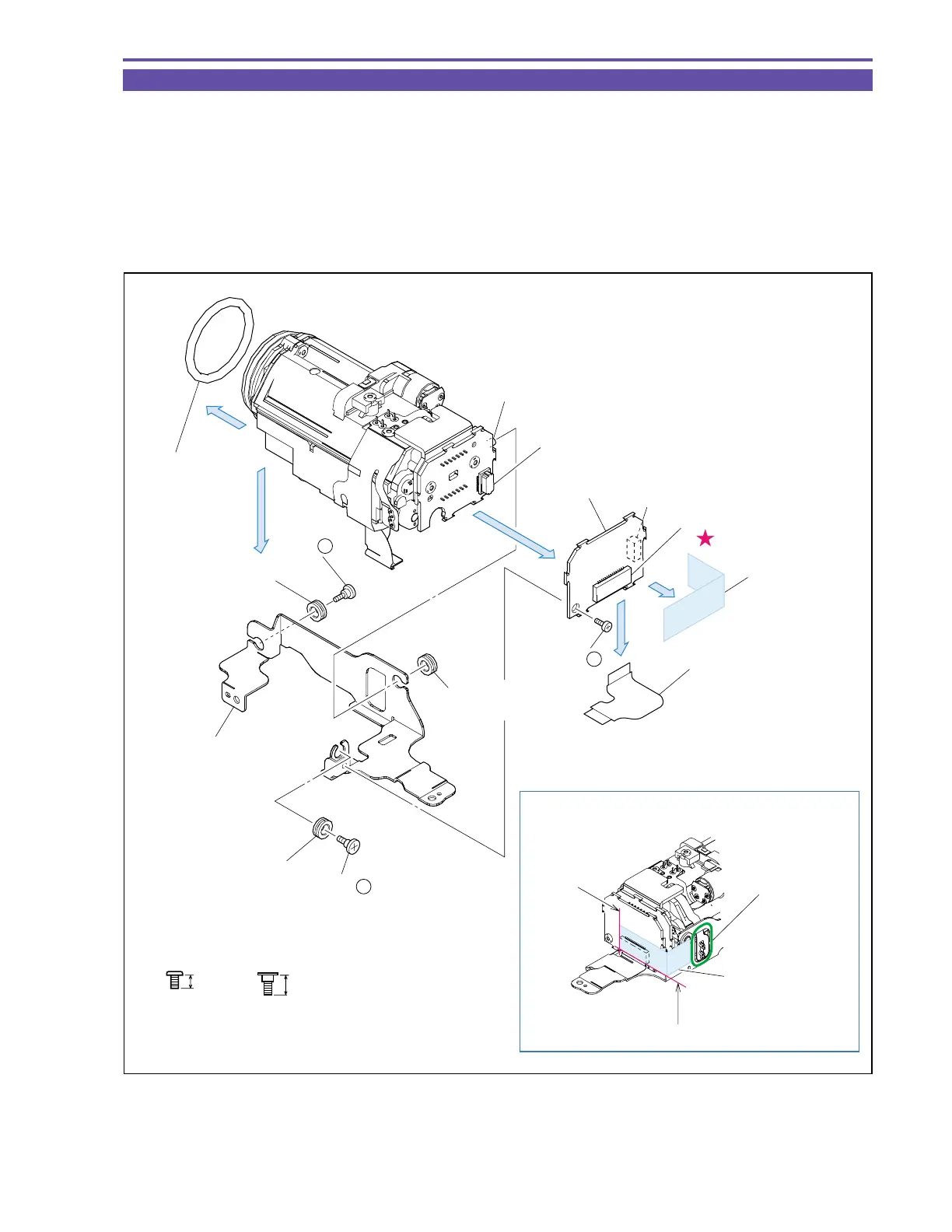 (4) Remove two screws (m × 2), disengage the dowel A, and detach the Camera Holder and Insulation Rubber.
