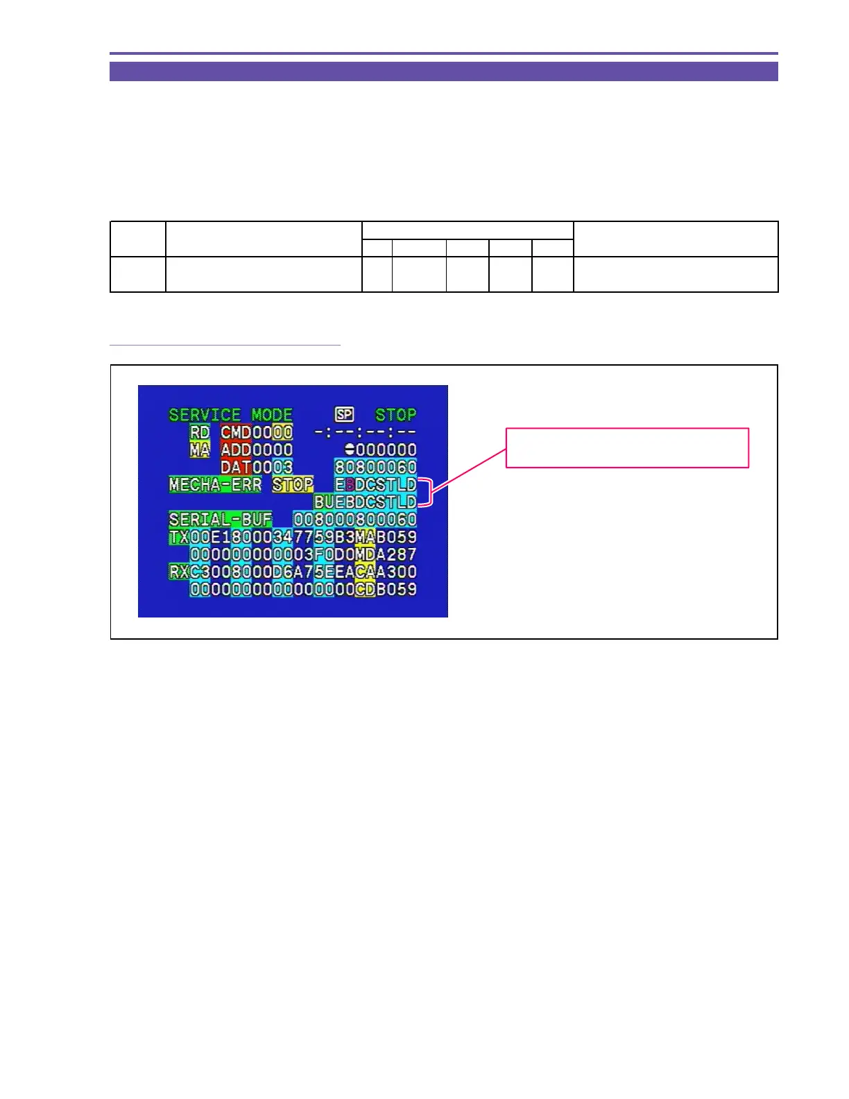 (2) In the normal indication mode of the mechanical error, two types of indications appear on the service mode initial screen: the data