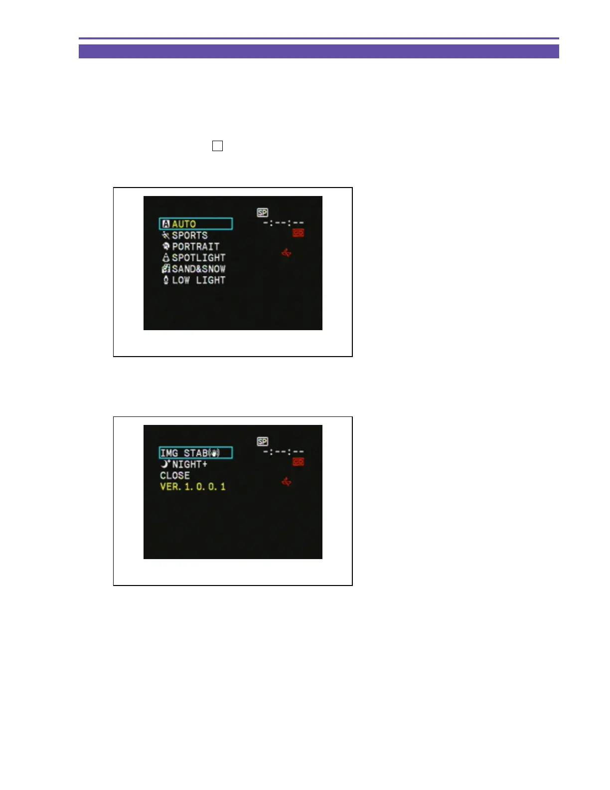 ex) IS setting in card camera mode.