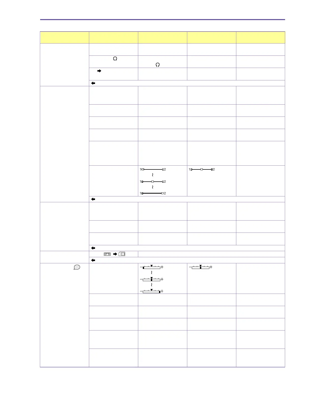 MAIN MENU ITEM SUB MENU ITEM SETTINGS DEFAULT BACKUP