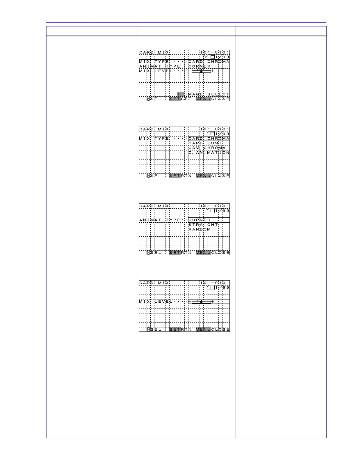 Card mix selection screen