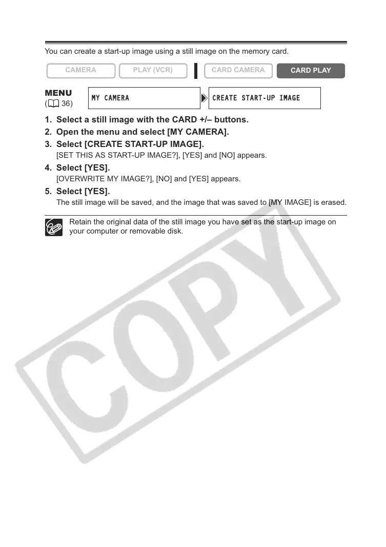 You can create a start-up image using a still image on the memory card.