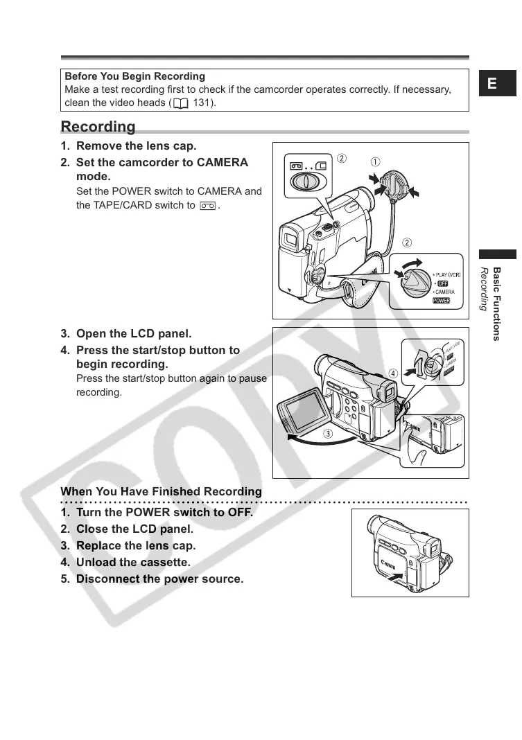 Make a test recording first to check if the camcorder operates correctly. If necessary,