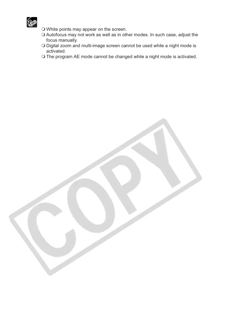 Digital zoom and multi-image screen cannot be used while a night mode is
