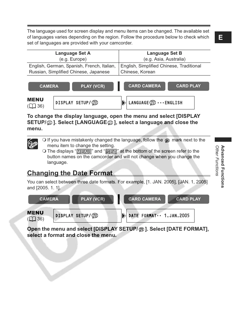Open the menu and select [DISPLAY SETUP/ ]. Select [DATE FORMAT],