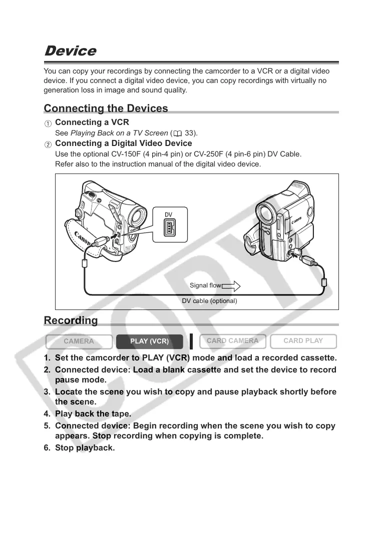 device. If you connect a digital video device, you can copy recordings with virtually no