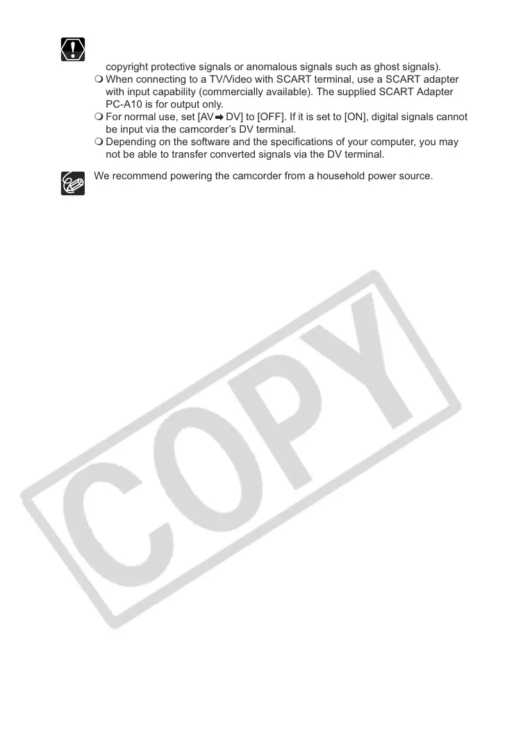 When connecting to a TV/Video with SCART terminal, use a SCART adapter
