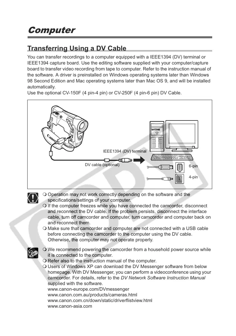 before connecting the camcorder to the computer using the DV cable.