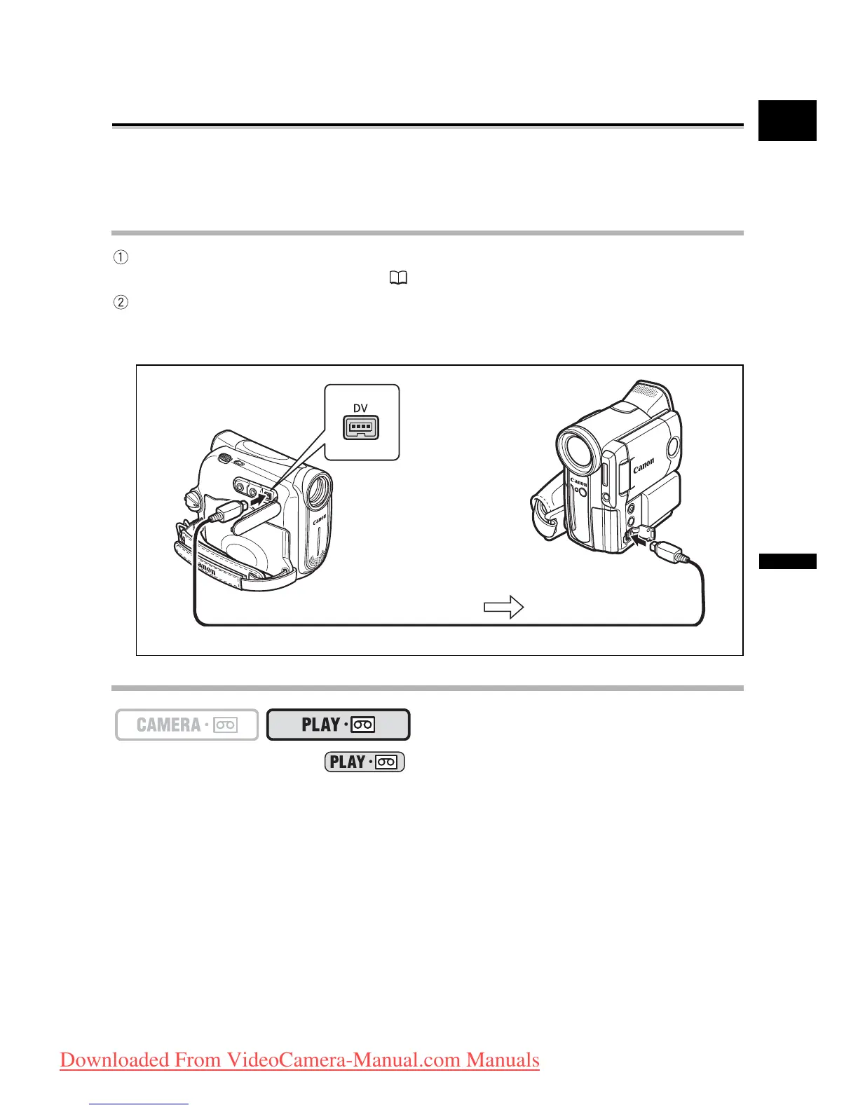 Use the optional CV-150F (4 pin-4 pin) or CV-250F (4 pin-6 pin) DV Cable.