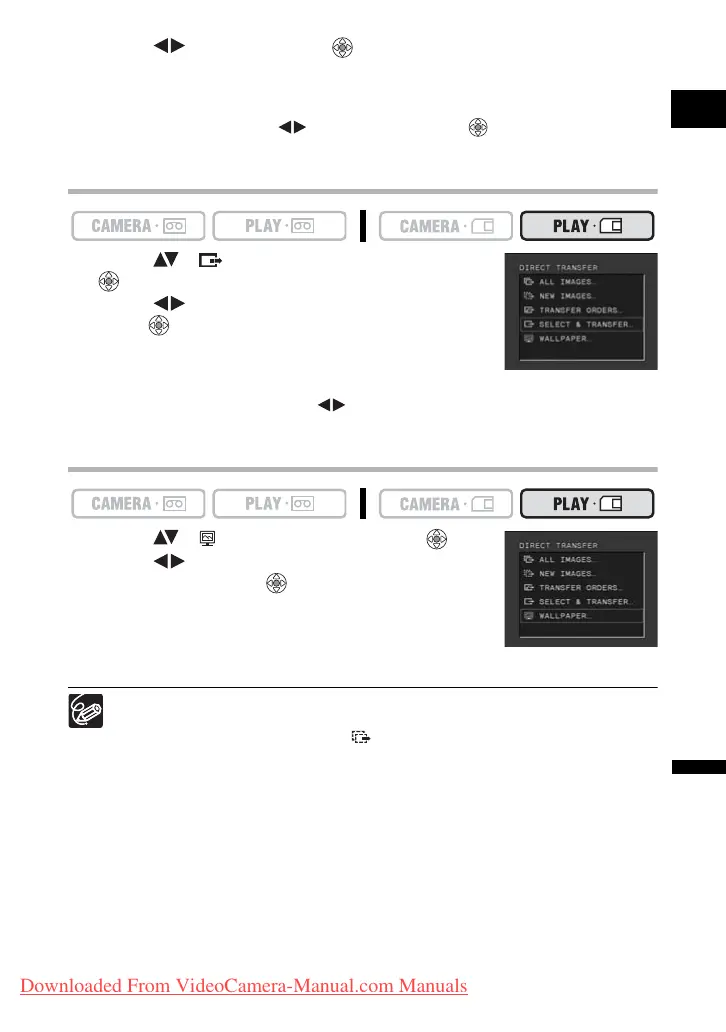 • Pressing the FUNC. button brings you back to the transfer menu.