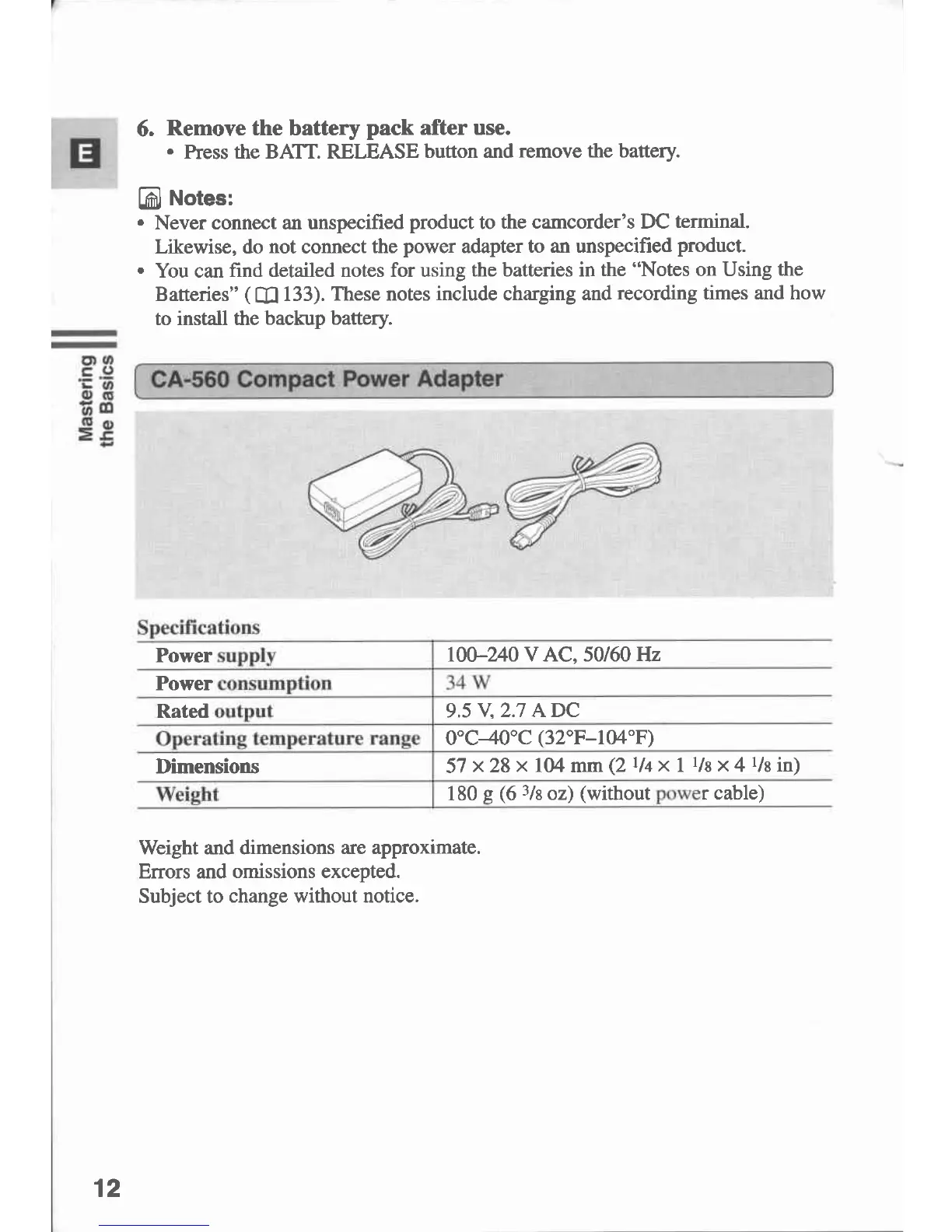 Canon MVX 1 - CA-560 Compact Power Adapter