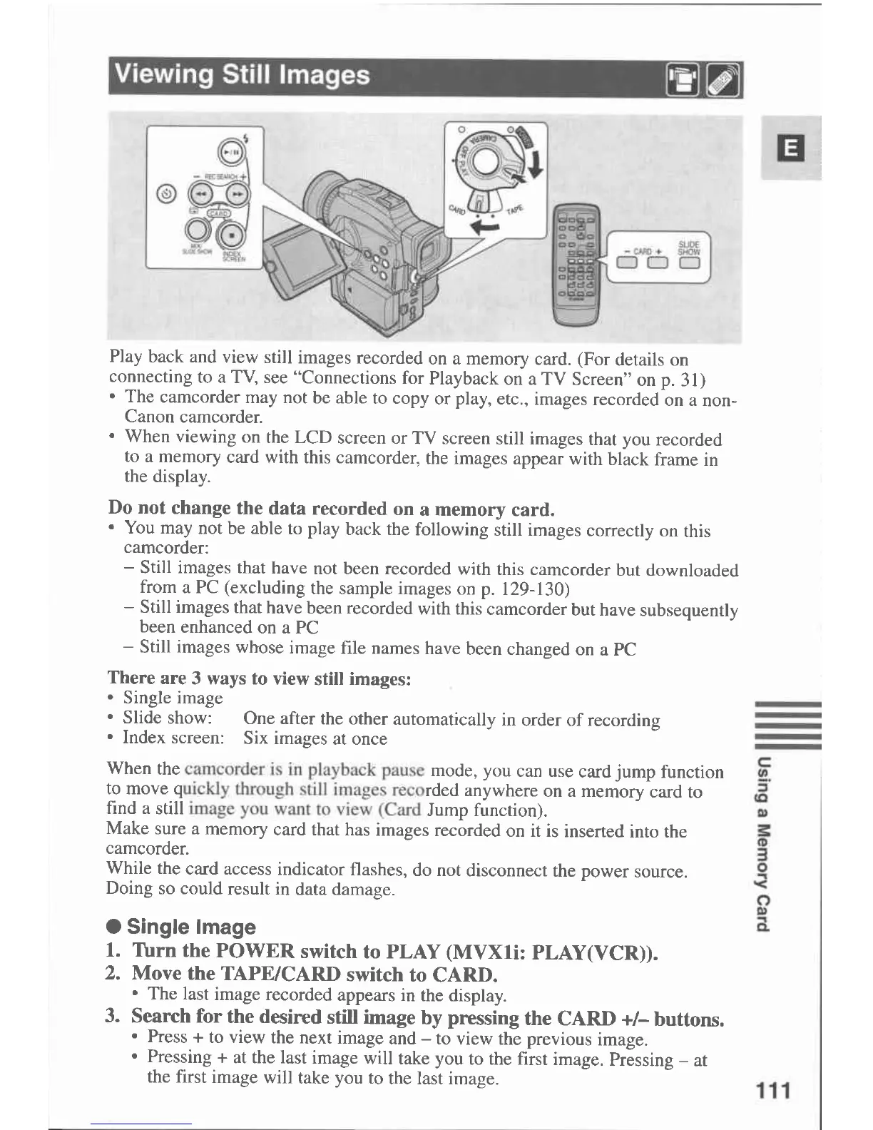 Canon MVX 1 - Viewing Still Images; Single Image
