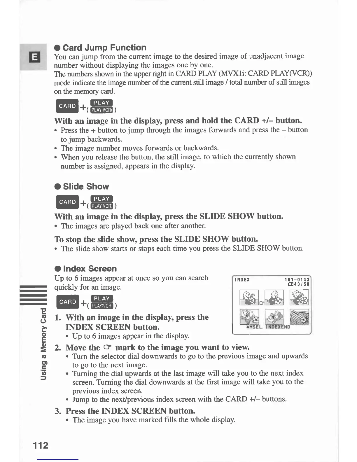 Canon MVX 1 - Card Jump Function; Slide Show; Index Screen