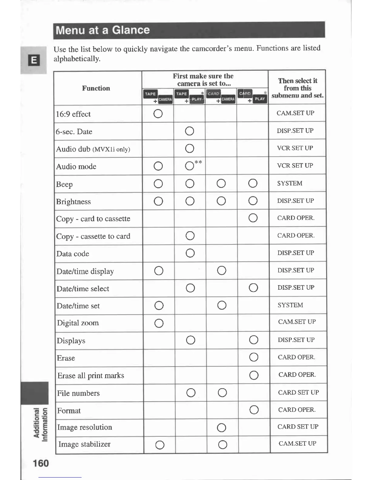 Canon MVX 1 - Menu at a Glance