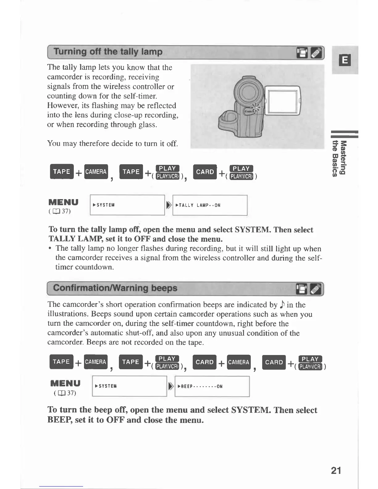 Canon MVX 1 - Turning off the Tally Lamp; Confirmation;Warning Beeps