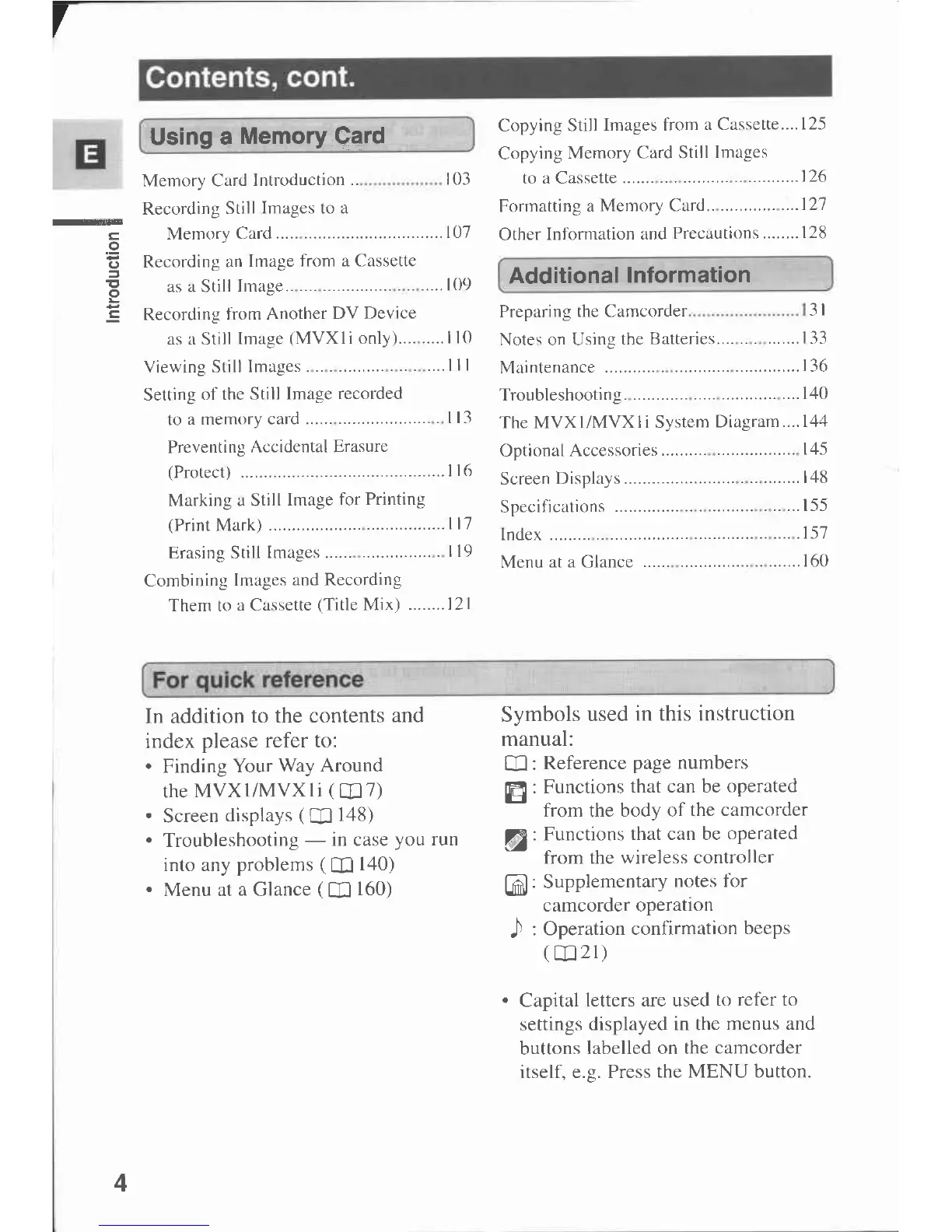 Canon MVX 1 - Contents