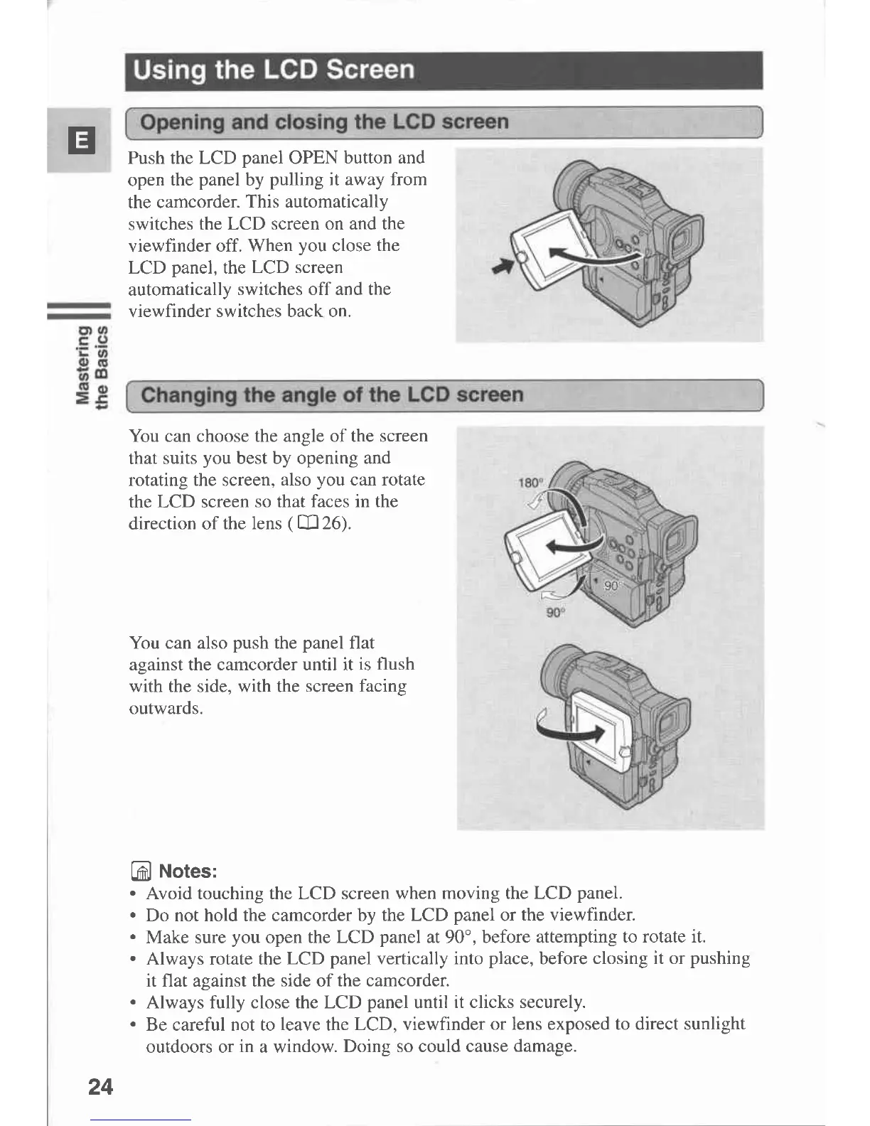 Canon MVX 1 - Using the LCD Screen; Opening and Closing the LCD Screen; Changing the Angle of the LCD Screen
