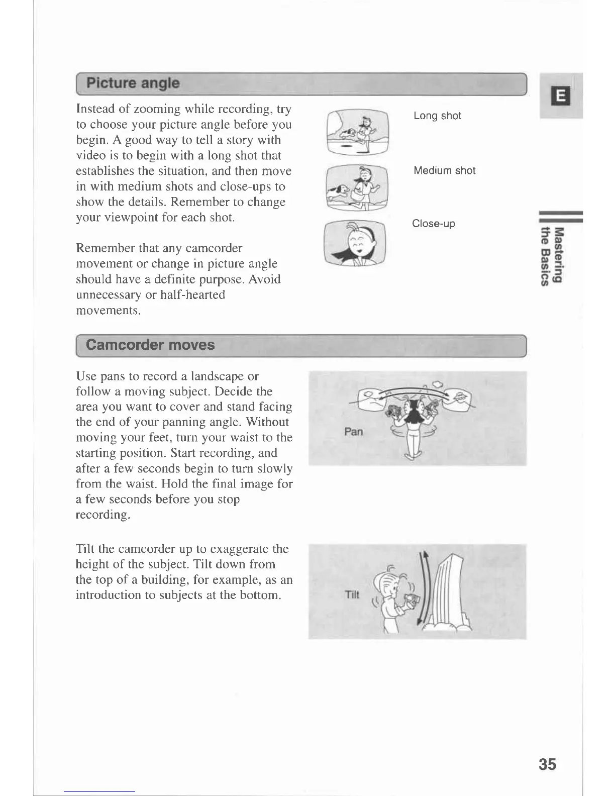 Canon MVX 1 - Picture Angle; Camcorder Moves