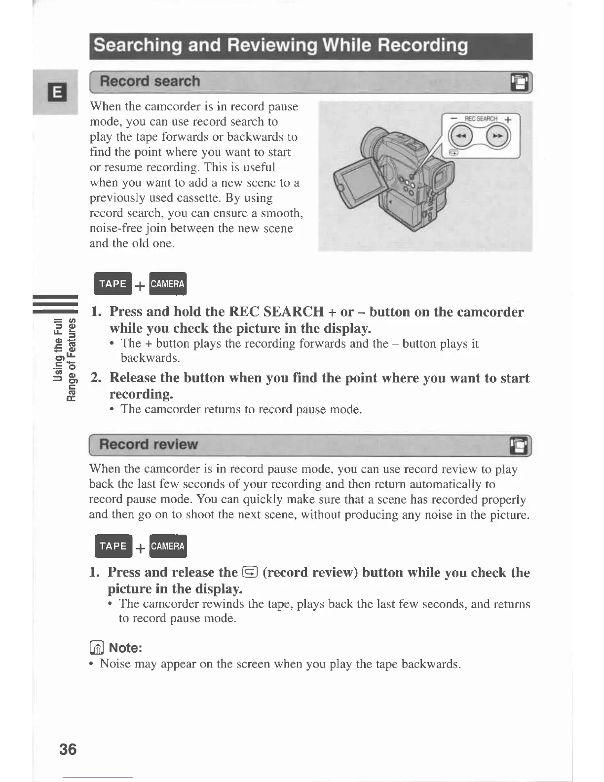 Canon MVX 1 - Searching and Reviewing While Recording; Record Search; Record Review