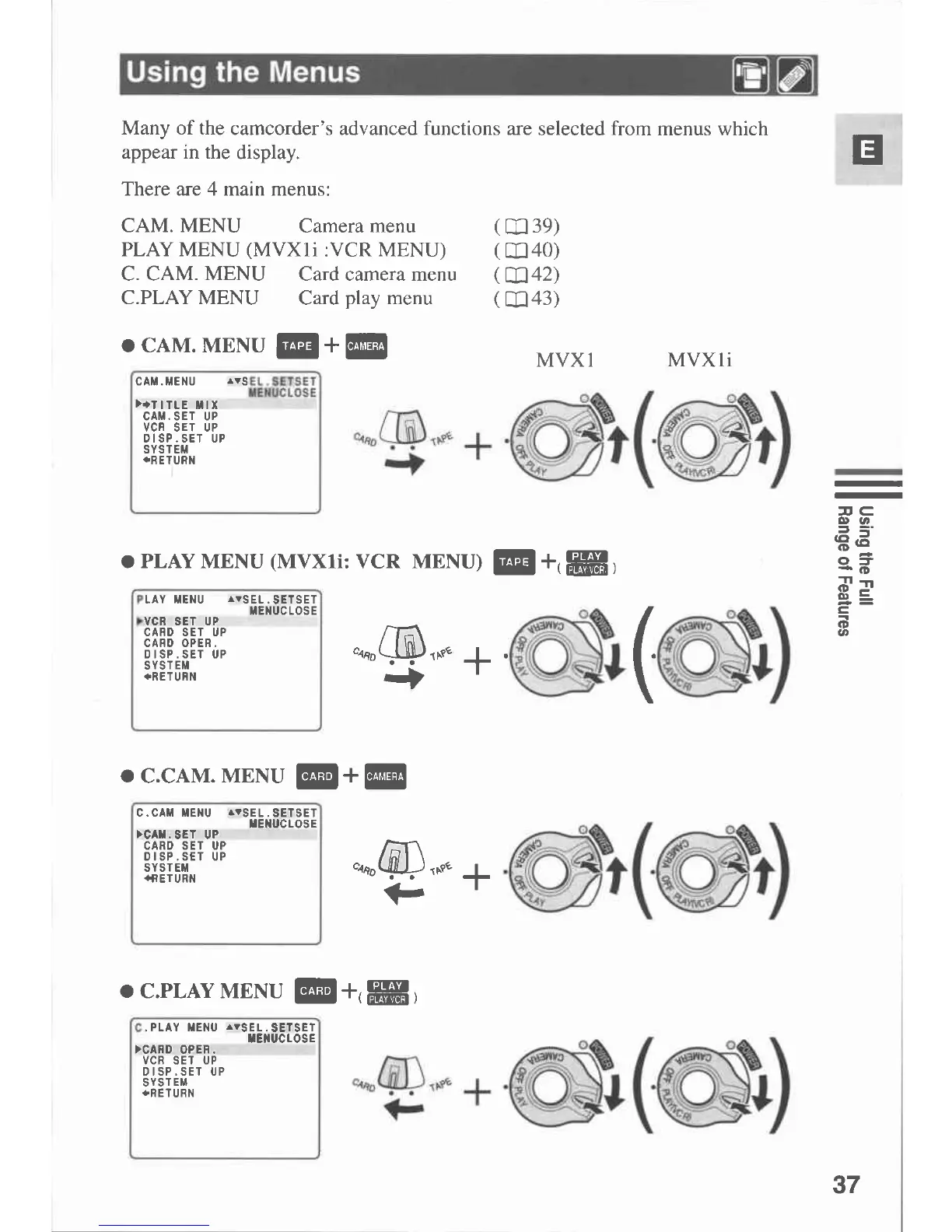 Canon MVX 1 - Using the Menus; Cam. Menu; Play Menu; C. Cam Menu