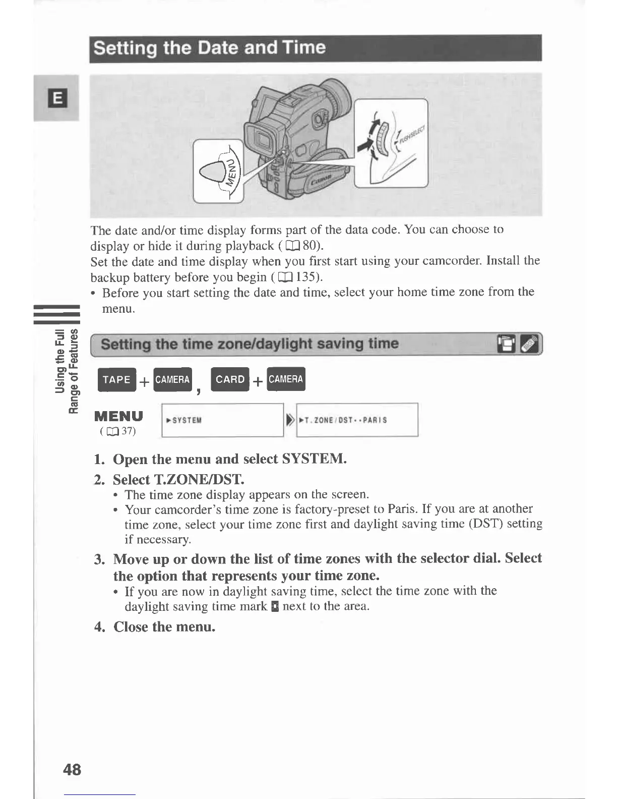 Canon MVX 1 - Setting the Date and Time; Setting the Time Zone;Daylight Saving Time