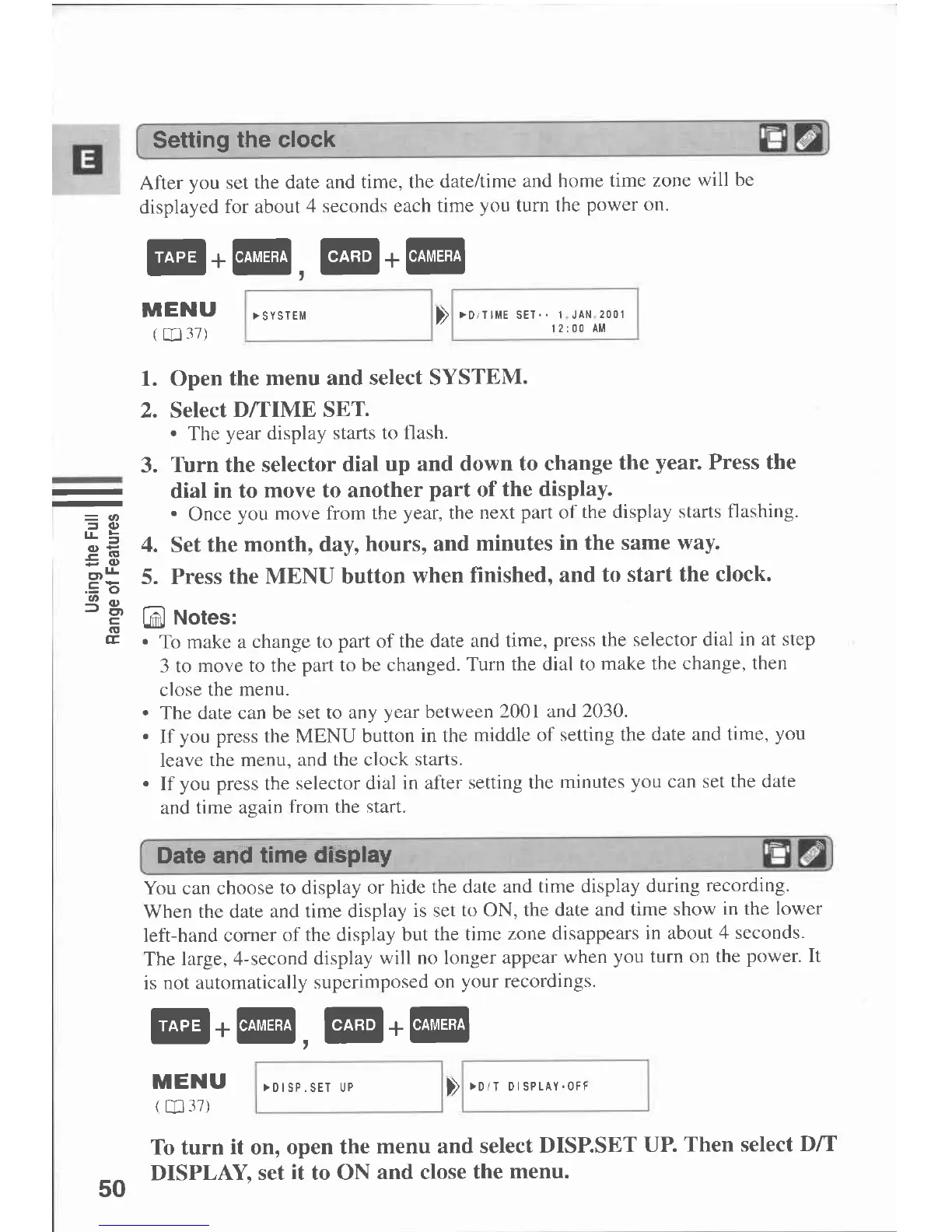 Canon MVX 1 - Setting the Clock; Date and Time Display
