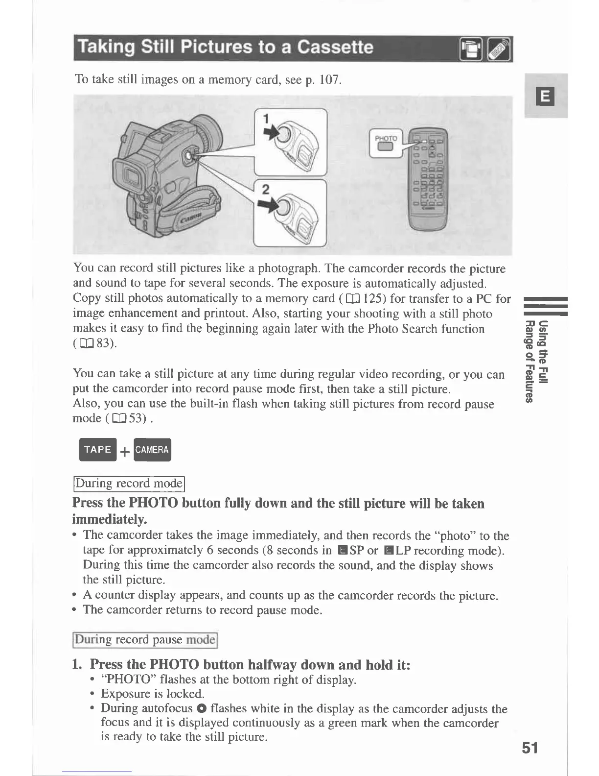 Canon MVX 1 - Taking Still Pictures to a Cassette