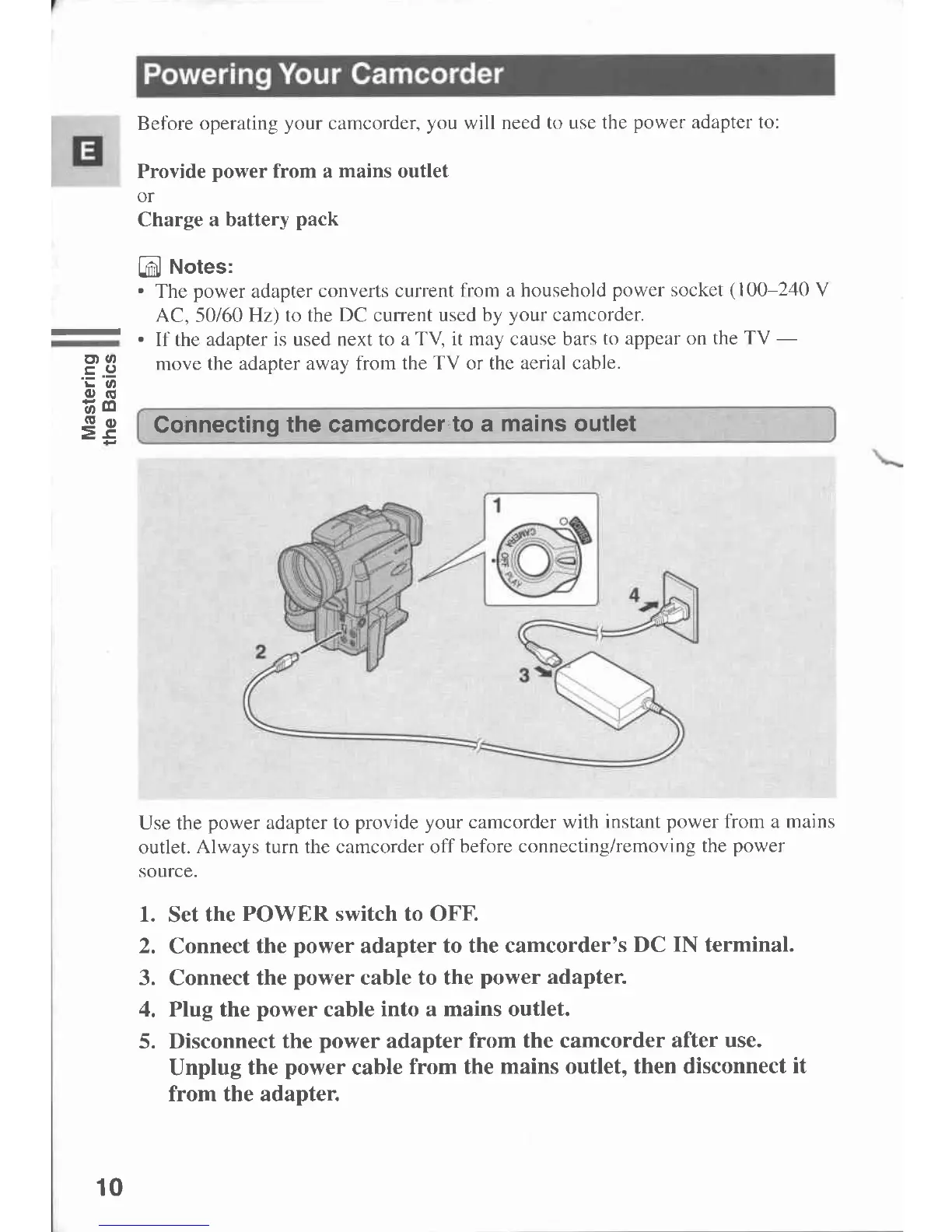 Canon MVX 1 - Powering Your Camcorder; Connecting the Camcorder to a Mains Outlet