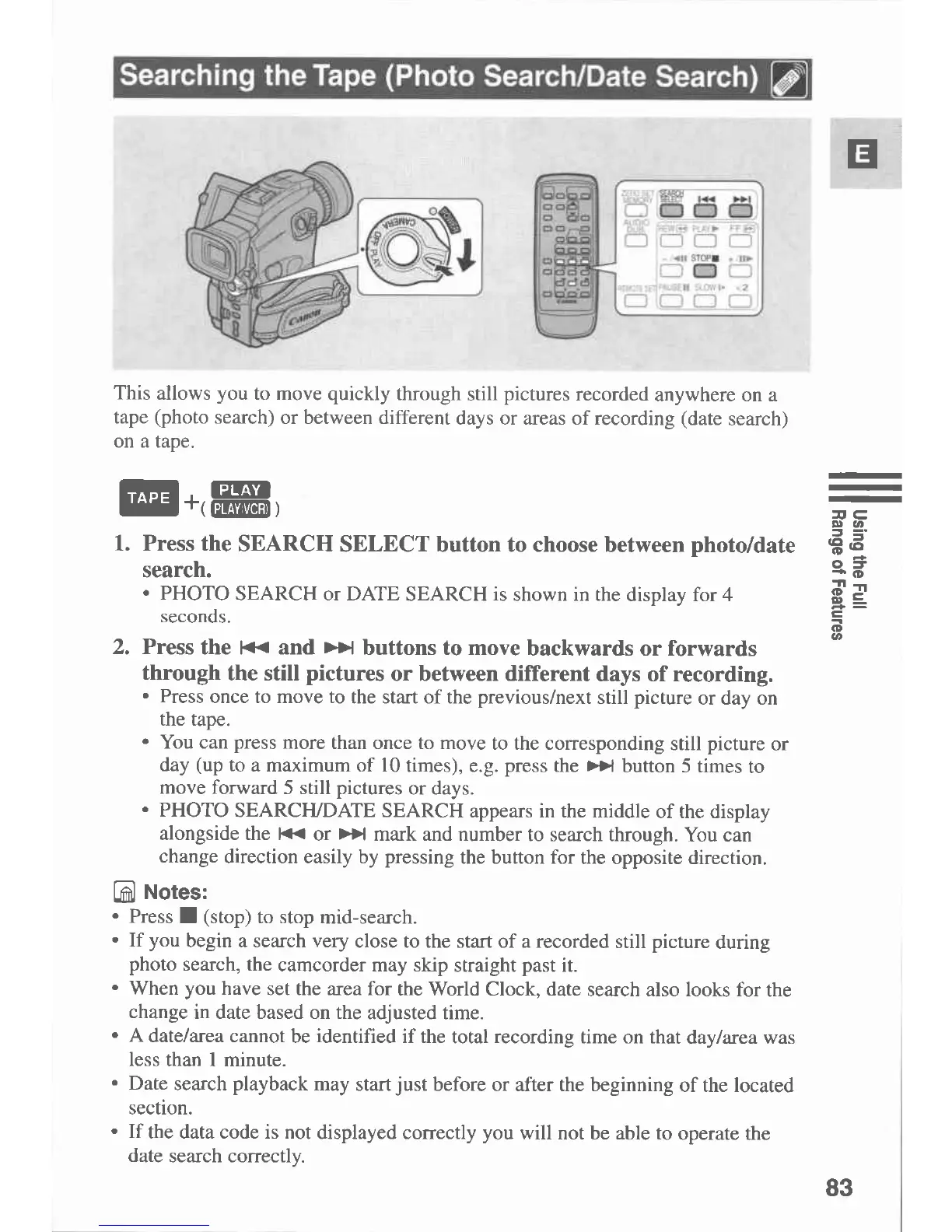 Canon MVX 1 - Searching the Tape (Photo Search;Date Search)