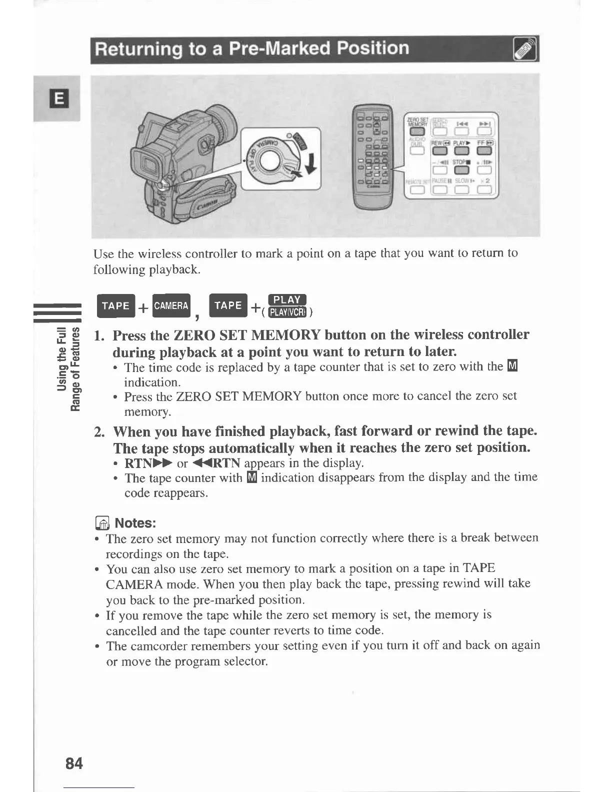 Canon MVX 1 - Returning to a Pre-Marked Position