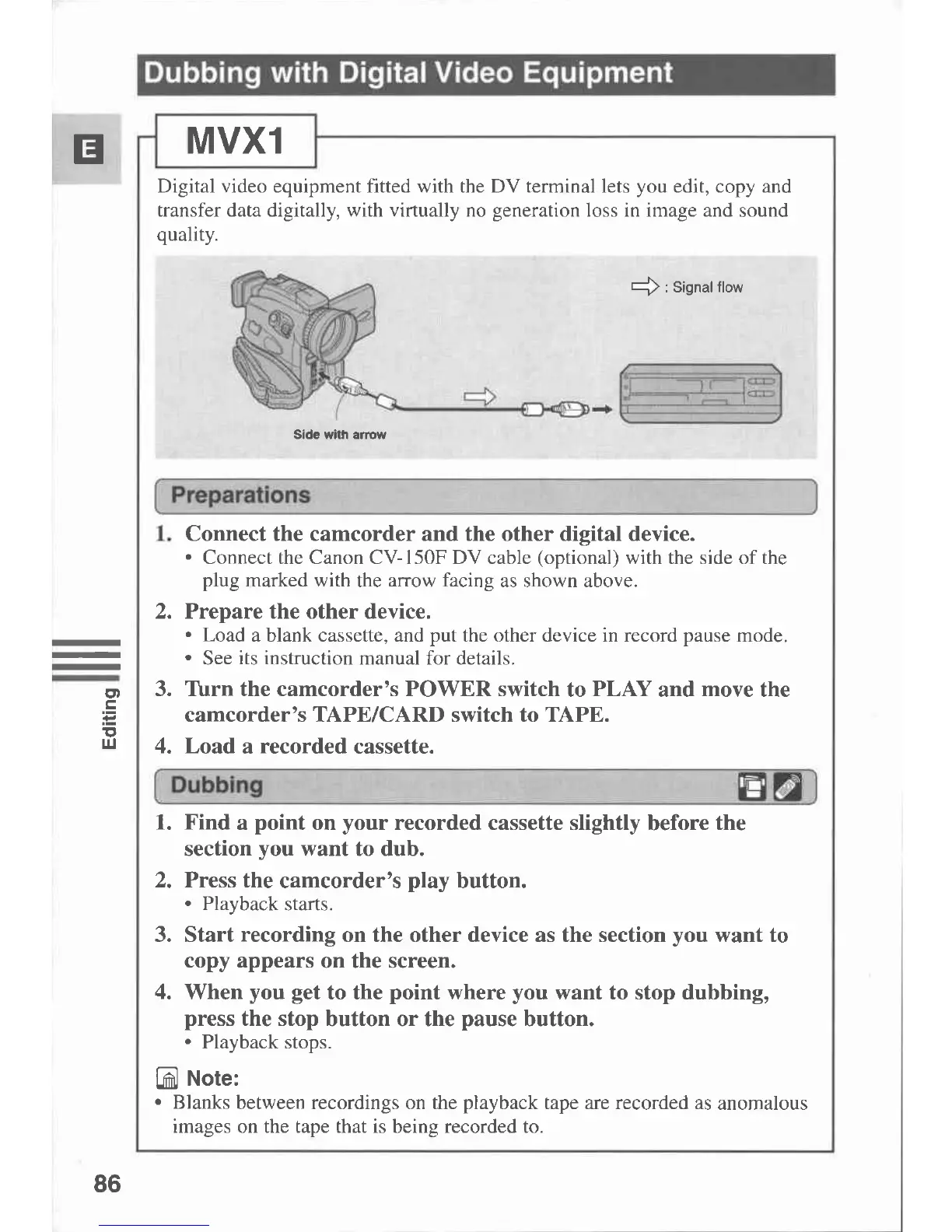 Canon MVX 1 - Dubbing with Digital Video Equipment