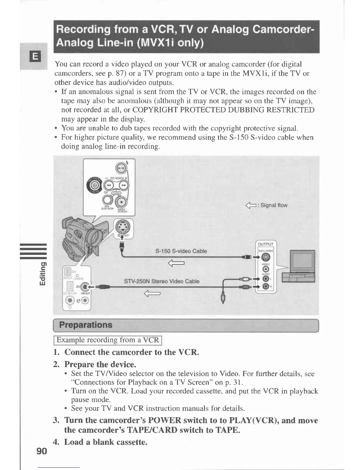 Canon MVX 1 - Recording from a VCR, TV or Analog Camcorder-Analog Line-In