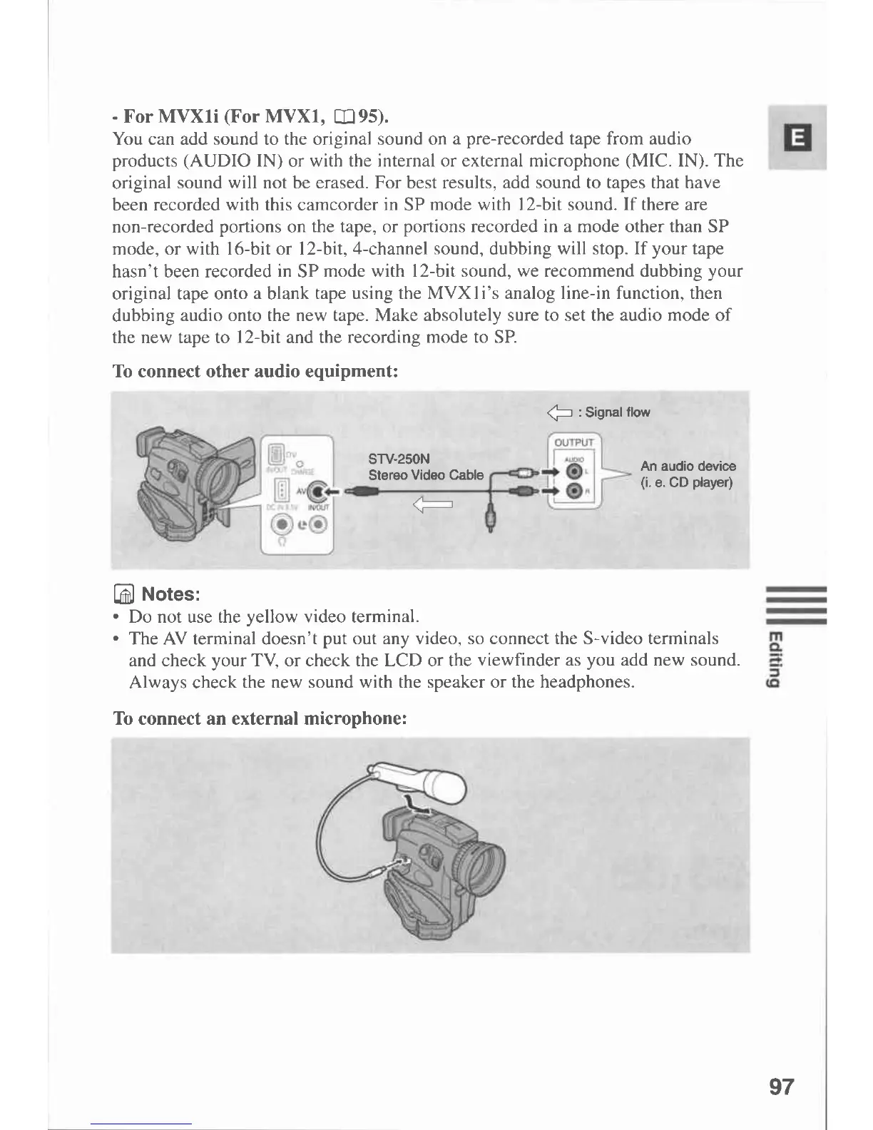 Canon MVX 1 - To Connect Other Audio Equipment
