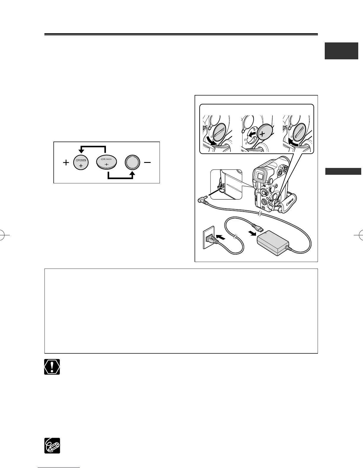 settings while the power source is disconnected. Power the camcorder from a
