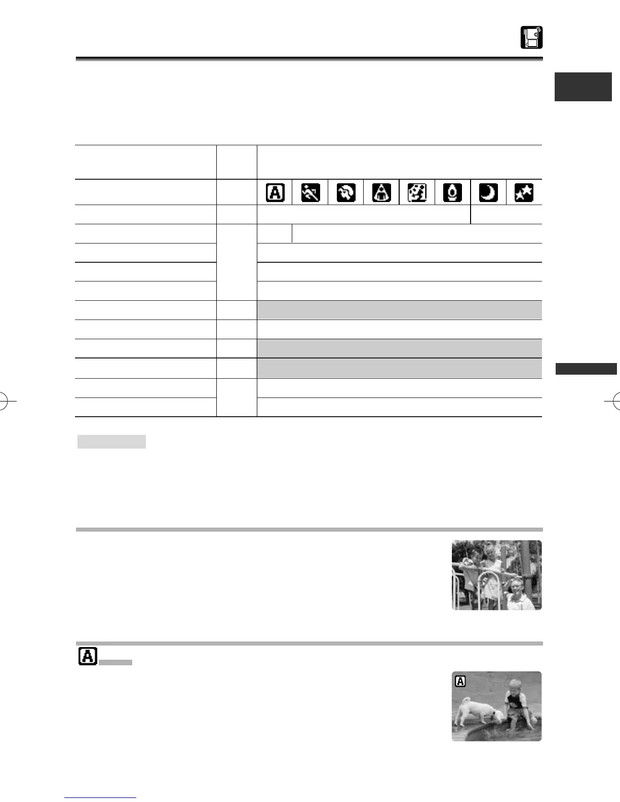 The camcorder is equipped with the Easy Recording program and several program AE