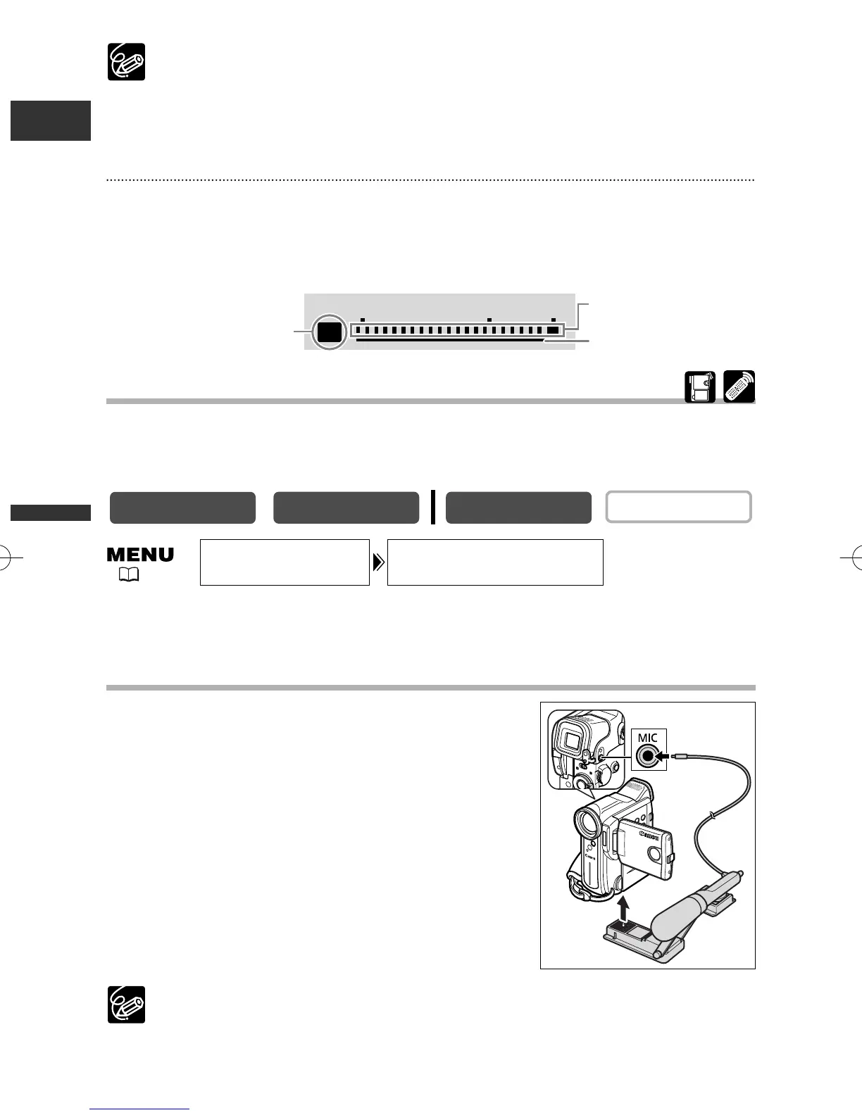❍ When [MIC LEVEL] is set to [MANUAL], the symbol "M" and a green bar is shown.