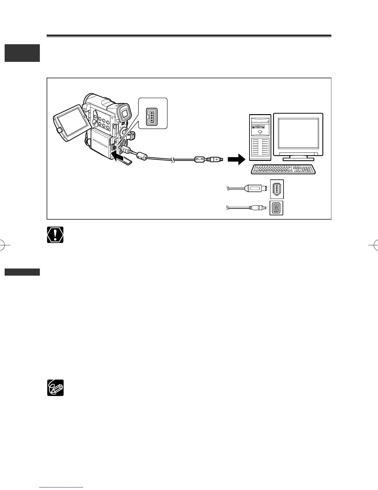 Use the optional CV-150F (4 pin–4 pin) or CV-250F (4 pin–6 pin) DV Cable.