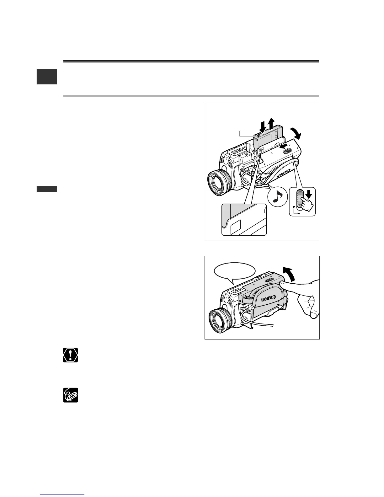 ❍ If the camcorder is mounted on a tripod, dismount the camcorder to open the
