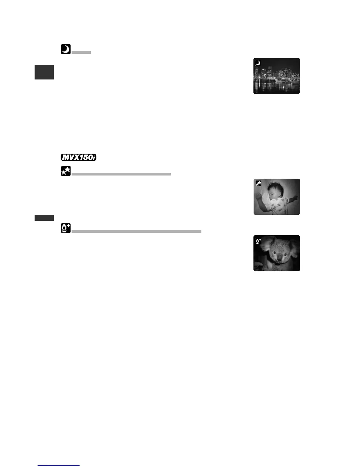 ❍ Autofocus may not work as well as in other modes. In such case, adjust the focus