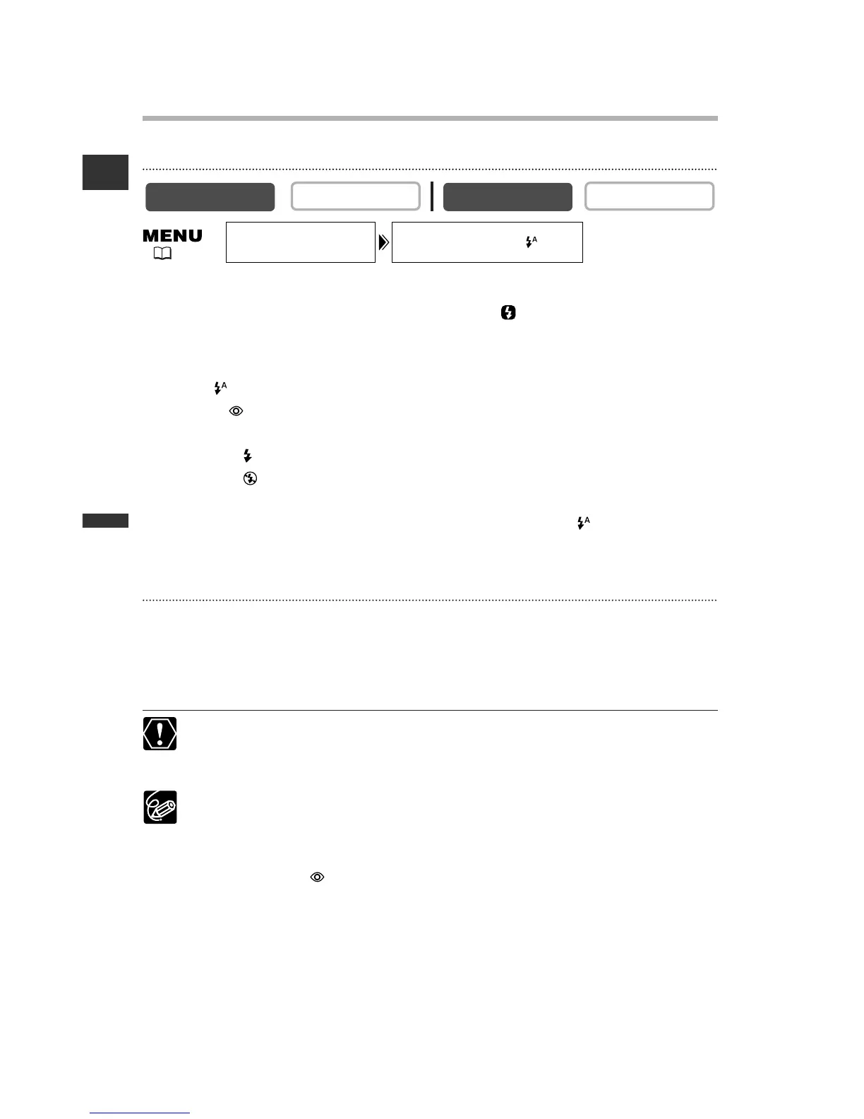 • The symbol of the selected flash mode appears on the screen. “ ” disappears after